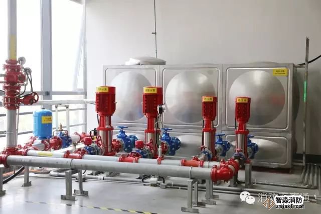 說明:因?yàn)樽詣?dòng)噴水滅火系統(tǒng)滅火不成功的因素中,供水中斷是主要因素之一,所以這一條對(duì)三種水源情況既提出了要求,又要實(shí)際檢查是否符合設(shè)計(jì)和施工驗(yàn)收規(guī)范中關(guān)于水源的規(guī)定,特別是利用天然水源作為系統(tǒng)水源時(shí),除水量應(yīng)符合設(shè)計(jì)要求外,水質(zhì)必須無(wú)雜質(zhì)、無(wú)腐蝕性,以防堵塞管道、噴頭,腐蝕管道,即水質(zhì)應(yīng)符合工業(yè)用水的要求。對(duì)于個(gè)別地方,用露天水池或河水作臨時(shí)水源時(shí),為防止雜質(zhì)進(jìn)入消防水泵和管網(wǎng),影響噴頭布水,需在水源進(jìn)入消防水泵前的吸水口處,設(shè)有自動(dòng)除渣功能的固液分離裝置,而不能用格柵除渣,因格柵被雜質(zhì)堵塞后,易造成水源中斷。如成都某賓館的消防水池是露天水池,池中有水草等雜質(zhì),消防水泵啟動(dòng)后,因水泵吸水量大,雜質(zhì)很快將格柵堵死,消防水泵因進(jìn)水口無(wú)水,達(dá)不到滅火目的。