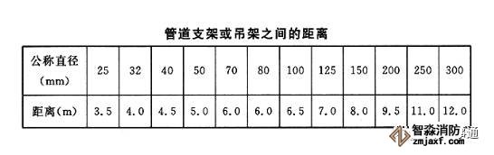 1)管道應(yīng)固定牢固;管道支架或吊架之間的距離不應(yīng)大于下表的規(guī)定。