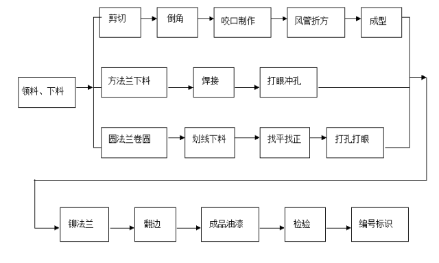 ① 風(fēng)管法蘭平整,焊縫飽滿,無缺口。‚