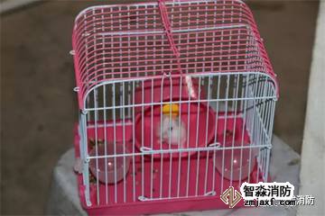 在A、B商鋪的夾層分別放置一裝有倉鼠的鐵籠。安排一名戰(zhàn)斗員著戰(zhàn)斗服戴空氣呼吸器在B商鋪夾層觀察高溫煙氣蔓延情況,并利用床單或窗簾等物品示范結繩逃生。