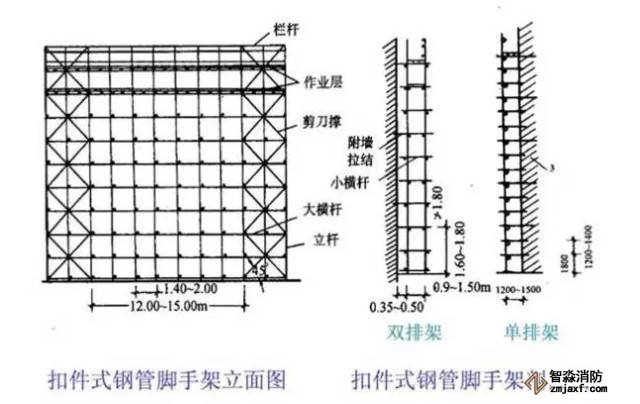 腳手架:是指搭設(shè)在建筑物及設(shè)備四周墻外邊的腳手架。里腳手架:是指搭設(shè)在建筑物內(nèi)部供各樓層砌筑和清面裝飾用的及設(shè)備(容器)內(nèi)部的腳手架。