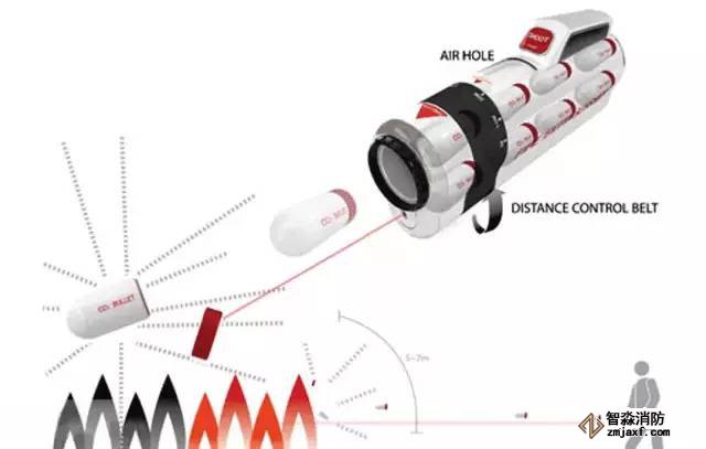 這款滅火器適用于超大型的火災,將滅火物質儲存在了類似于膠囊的小容器中,它借鑒了玩具槍的設計,而每個滅火的小容器都是“子彈”。一旦火災發(fā)生時,人們只需抓起“滅火槍”對準火場“開火”即可。這樣不僅有利于滅火物質的迅速散開,而且可以在更遠的距離進行滅火,因此安全系數(shù)更高。