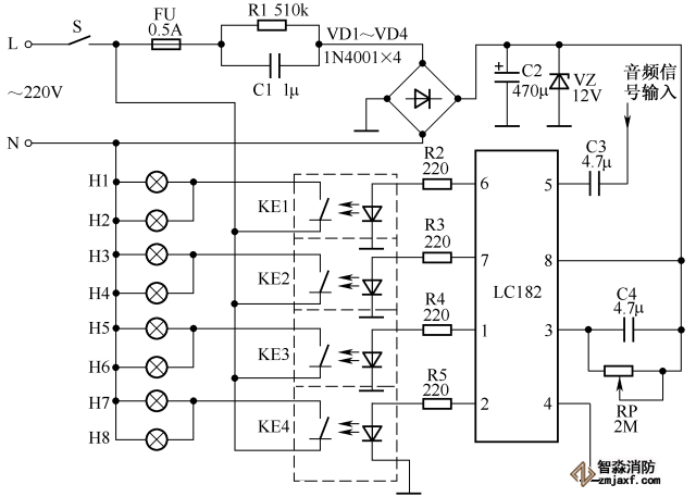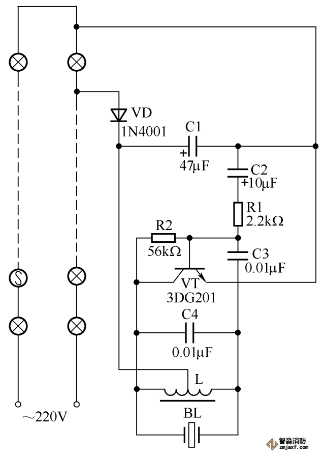 將兩個功率相同的110V白熾燈接在220V電源上使用的電路