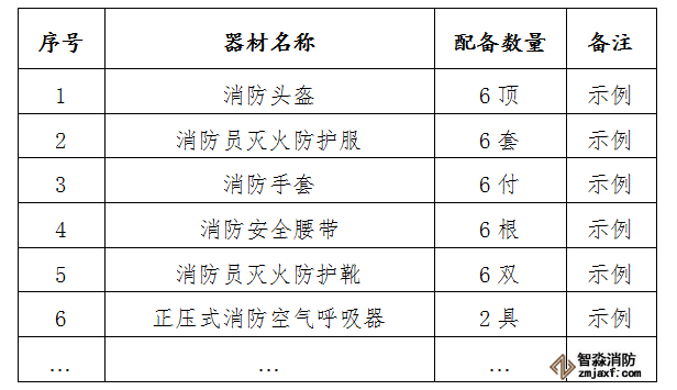 三、微型消防站裝備配備