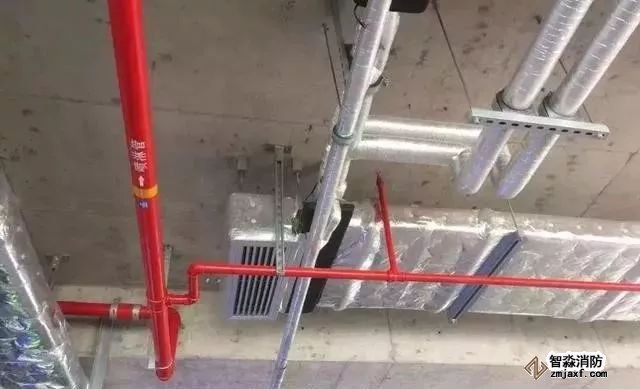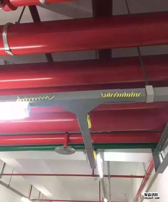 消防噴淋管道間距一致,標(biāo)識(shí)清楚、成排成線。