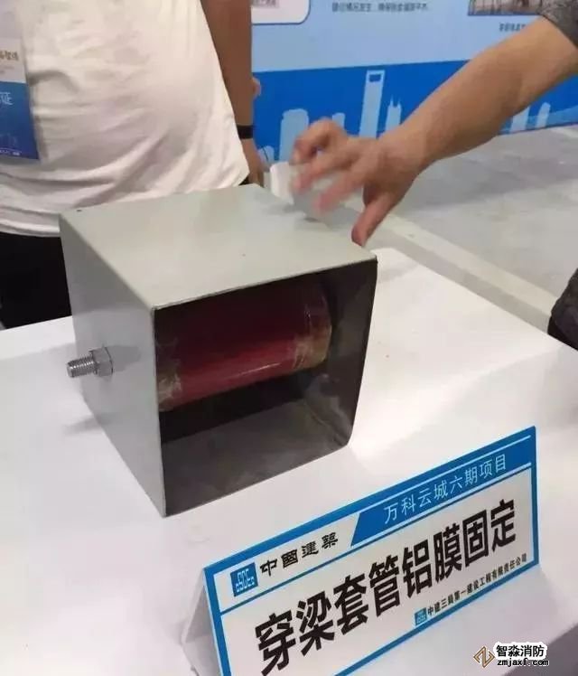 風(fēng)管穿墻,防火泥封堵到位,界面清楚。