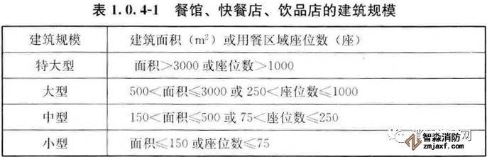 3、飲食建筑按建筑規(guī)??煞譃樘卮笮?、大型、中型和小型,并應(yīng)符合表1.0.4-1及表1.0.4-2的規(guī)定。