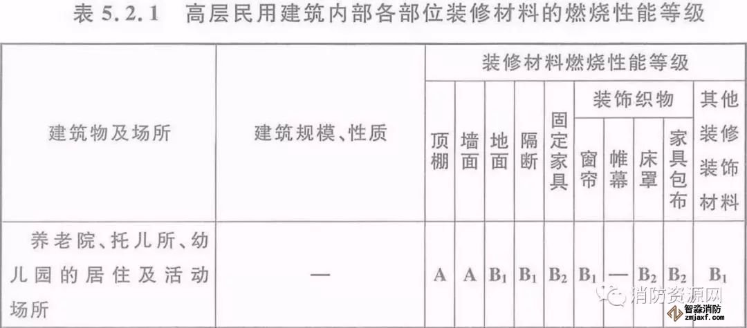 二、當(dāng)設(shè)置在高層民用建筑時(shí),內(nèi)部各部位裝修材料的燃燒性能等級(jí),不應(yīng)低于《建筑內(nèi)部裝修設(shè)計(jì)防火規(guī)范》5.2.1的規(guī)定。