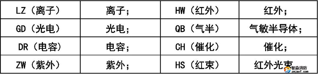火災(zāi)探測(cè)器產(chǎn)品型號(hào)編制示例:
