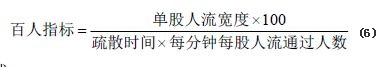 據(jù)此,按照疏散凈寬度指標公式計算出一、二級耐火等級建筑的觀眾廳中每100 人所需疏散寬度為:。