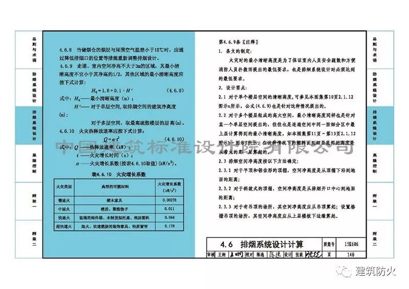 7、第140頁的正文公式4.6.10中,“t”改為“火災(zāi)增長時(shí)間”。