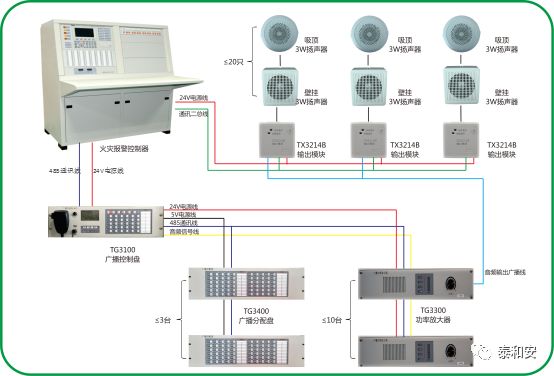 5. 分區(qū)可擴(kuò)展,最大支持?jǐn)U展3個TG3400廣播分配盤,每個廣播分配盤60區(qū);