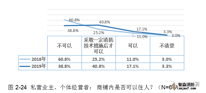 雖然群眾對這一常識有一定的認知,但其知曉率(79.6%)比2018年(86.0%)下降了6.4個百分點!說明私營業(yè)主、個體經(jīng)營者的消防安全意識有所松懈!