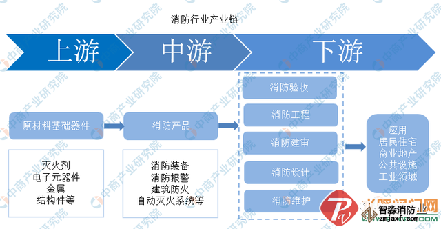 消防既包括“消”,又包括“防”。消防產(chǎn)業(yè)鏈條長,主要分為消防設(shè)計、消防建審、消防產(chǎn)品、消防工程、消防驗收、消防維保等環(huán)節(jié)。消防產(chǎn)品是整個產(chǎn)業(yè)的核心環(huán)節(jié)。消防產(chǎn)品主要包括:消防裝備、消防報警、建筑防火、自動滅火系統(tǒng)等。