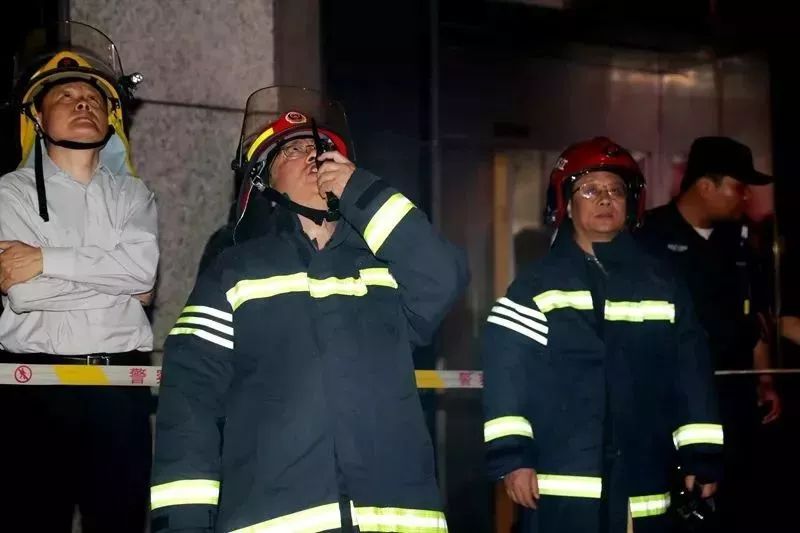 21時25分許,周詳總隊長、梁新國政委到達現(xiàn)場。根據災情現(xiàn)狀,周詳總隊長要求:組織到場力量全力搜救被困人員;充分利用固定消防設施進行內攻滅火堵截;消防車???、連接大樓水泵接合器,確保建筑內部消防管網壓力、流量不足情況下,滿足前方滅火需要;調派70米以上舉高車到場壓制外墻蔓延火災;參戰(zhàn)指戰(zhàn)員加強防護、編組作戰(zhàn),確保不發(fā)生人員傷亡。
