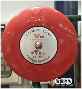 而發(fā)出聲光警報(bào)顯示火災(zāi)區(qū)域。同時(shí)由于濕式報(bào)警閥的開(kāi)啟,使一部分水流入報(bào)警管路,通過(guò)延時(shí)器延時(shí)后水力警鈴發(fā)出報(bào)警鈴聲,同時(shí)壓力開(kāi)關(guān)動(dòng)作向火災(zāi)報(bào)警控制器發(fā)出反饋信號(hào),火災(zāi)報(bào)警控制器通過(guò)邏輯關(guān)系啟動(dòng)噴淋泵。