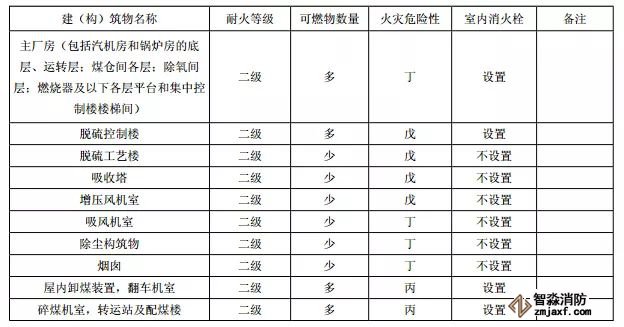 脫硫工藝樓,增壓風(fēng)機(jī)室,吸收塔,吸風(fēng)機(jī)室,屋內(nèi)高壓配電裝置(無油),除塵構(gòu)筑物,運(yùn)煤棧橋,運(yùn)煤隧道,油浸變壓器檢修間,油浸變壓器室,供、卸油泵房,油處理室,岸邊水泵房、中央水泵房,灰漿、灰渣泵房,生活消防水泵房,穩(wěn)定劑室、加藥設(shè)備室,進(jìn)水、凈水構(gòu)筑物,冷卻塔,化學(xué)水處理室,循環(huán)水處理室,啟動(dòng)鍋爐房,供氫站,推煤機(jī)庫,消防車庫,貯氫罐,空氣壓縮機(jī)室(有潤滑油),熱工、電氣、金屬實(shí)驗(yàn)室,天橋,排水、污水泵房,各分場維護(hù)間,污水處理構(gòu)筑物,電纜隧道,材料庫棚,機(jī)車庫,警衛(wèi)傳達(dá)室。