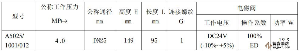 表1-10補(bǔ)水電磁閥主要技術(shù)參數(shù)