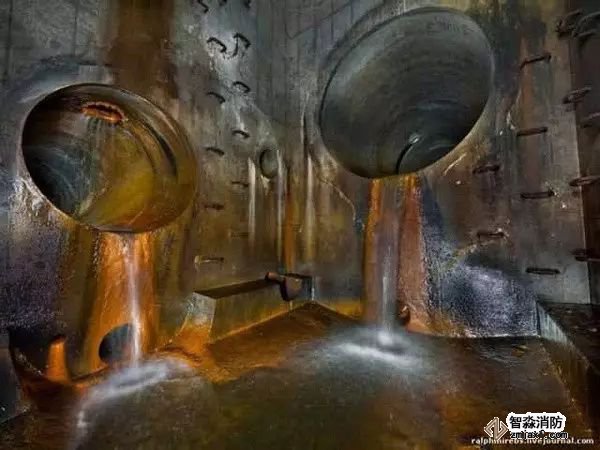 從上圖可以看到,在慕尼黑2434公里的排水管網(wǎng)中,布置著13個黃點表示的地下儲存水庫。這些地下儲存水庫,就好像是13個緩沖用的閥門,充當暴雨進入地下管道的中轉(zhuǎn)站。當暴雨不期而至,地下的儲水庫用他們706000立方米的容量, 暫時存貯暴雨的雨水,然后將雨水慢慢的釋放入地下排水管道,以確保進入地下設(shè)施的水量不會超過最大負荷量。